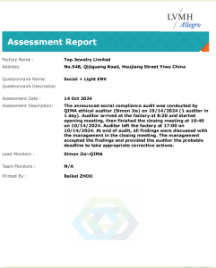 At Top Jewelry Ltd, as louis vuitton supplier, we are proud to hold the LVMH Factory Audit and undergo annual updates. If you need more information or would like to see our latest audit report, feel free to contact us at sales@top-jewelry.cn or sales@top-jewelry.net.